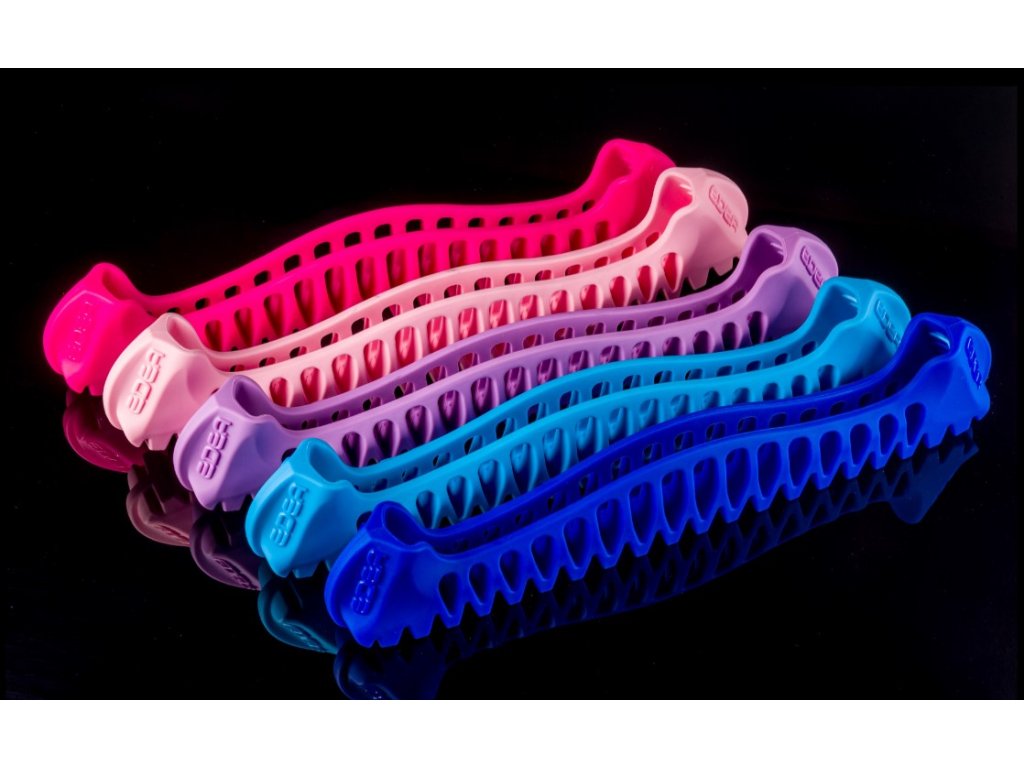 Chrániče bez nutnosti upravování velikosti. Pogumovaný materiál a otevřený design vyhovuje většině typů a velikostí nožů. Došlap je měkší a tišší. Speciální drenáž tohoto chrániče odvádí ihned vodu.