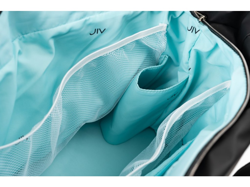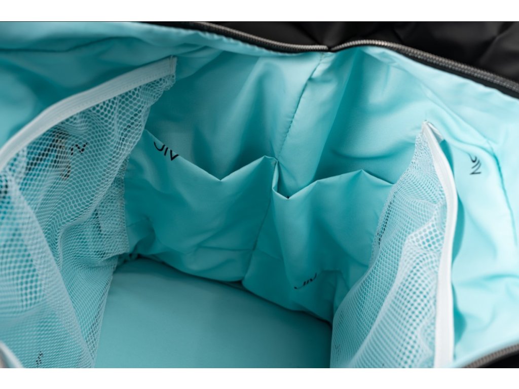 S oddělovačem ze síťoviny pro uložení vašich bruslí, pevným dnem pro ochranu vašich věcí v tašce. Samotná taška je lehká a odolná. Materiál na ní působí hladkým hedvábným dojmem. Taška má vnitřní kapsu na telefon nebo kartáč na vlasy, vnitřní kapsu na zip a vnější kapsu na zip.
