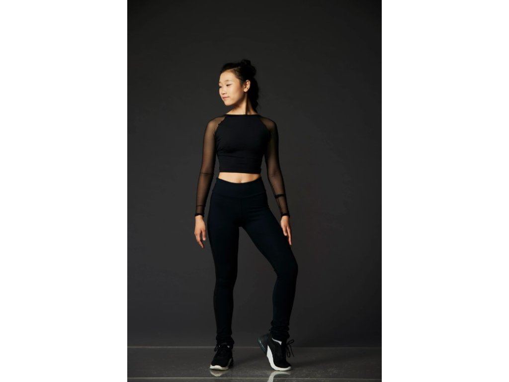 Tréninkové krasobruslařské zkrácené tričko "crop top" s dlouhými rukávy. Oboustranné tričko, které lze nosit na obě strany. Tričko je od značky Elite Xpression.